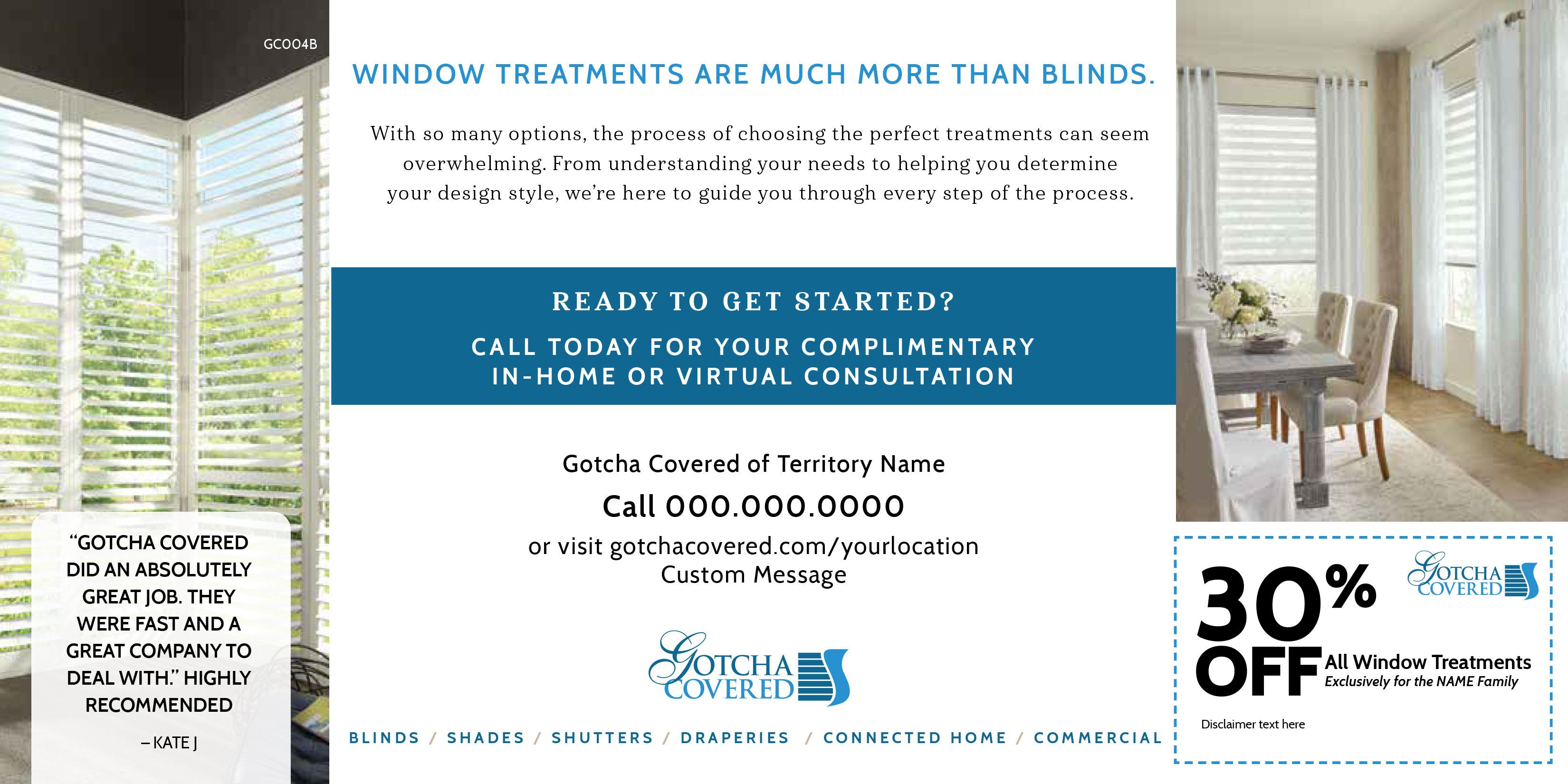 This audience is making an investment and will be staying in their home for several more years. Many of them will be making improvements on their best and biggest investment, their home. Now is a great time to reach out to them. From shutters as an investment to soft finishings such as drapes and pillows to bring that designer touch, your Gotcha Covered has a lot to offer those Homeowners making an investment to stay in their home.